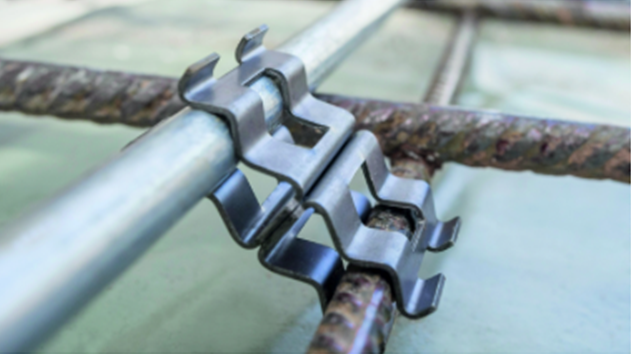 The DEHNclip rebar clip for quick connection of the earth electrode to the reinforcement with-out tools. DEHNclip is tested for a lightning cur-rent carrying capability of 50 kA (10/350 µs) in accordance with DIN EN 62561-1.