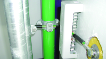 Earthing pipe clamps for integrating pipes into the protective and functional equipoten-tial bonding according to IEC 60364-4-41/5-54, with continuously adjustable tensioning strap